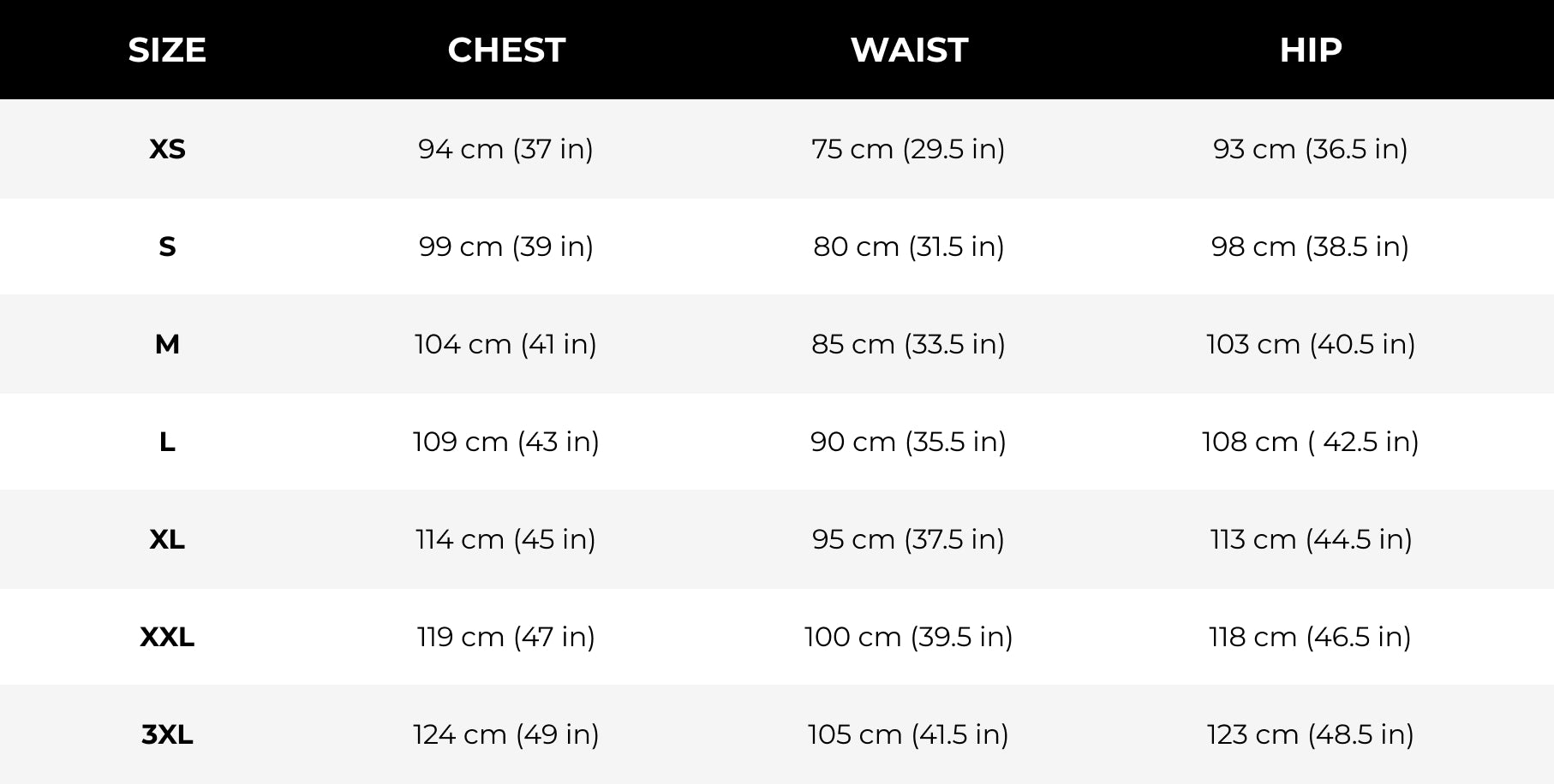 SIZE CHART
